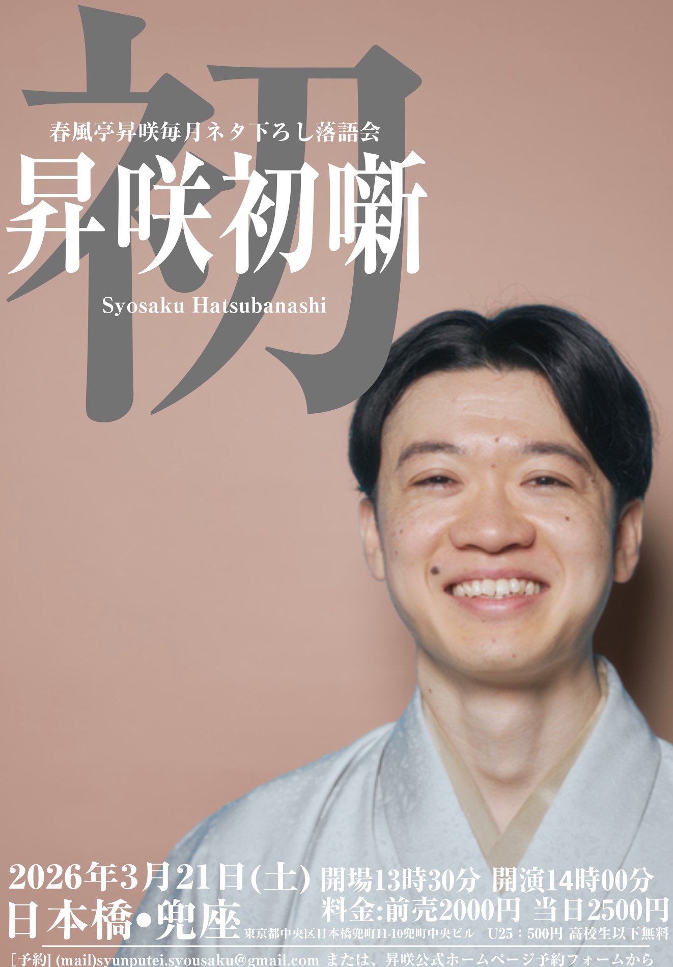 春風亭昇咲 毎月ネタ下ろし落語会『昇咲初噺』(はつばなし) 3月
